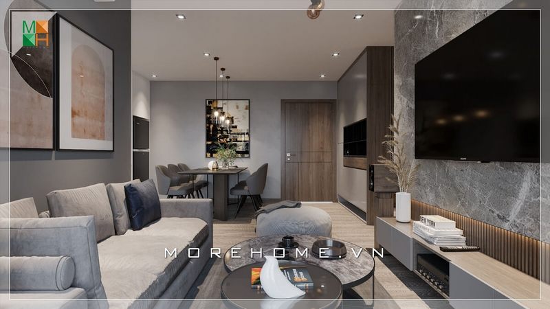 Ý tưởng thiết kế hiện đại tạo nên vẻ đẹp năng động, trẻ trung cho phòng khách căn hộ chung cư
