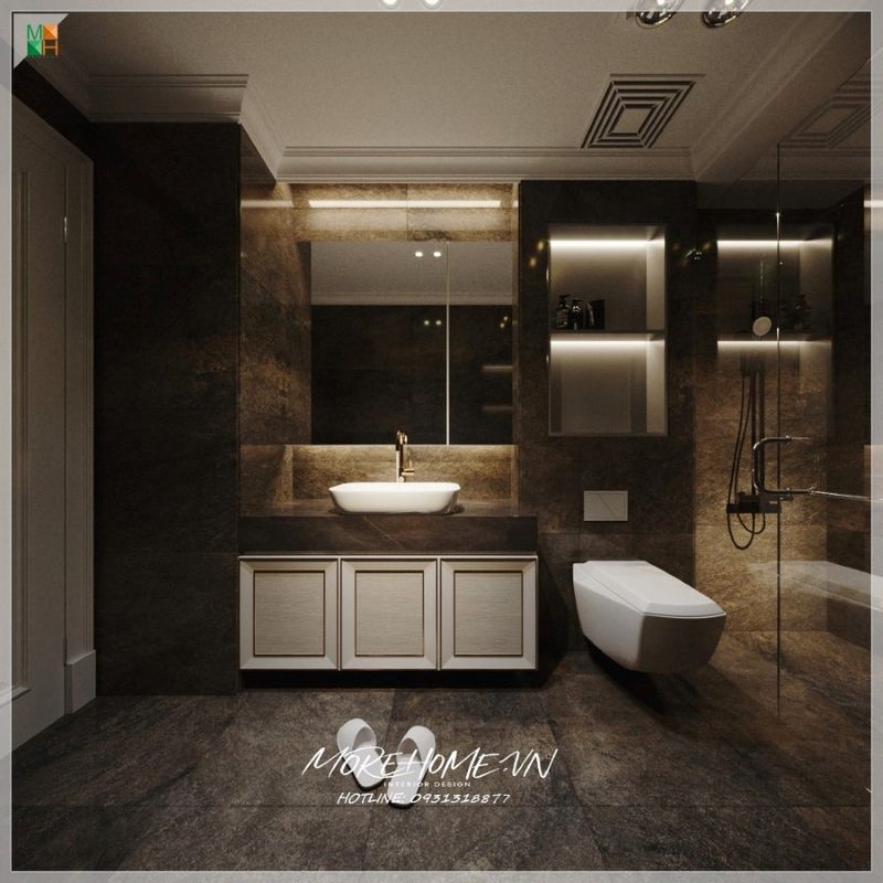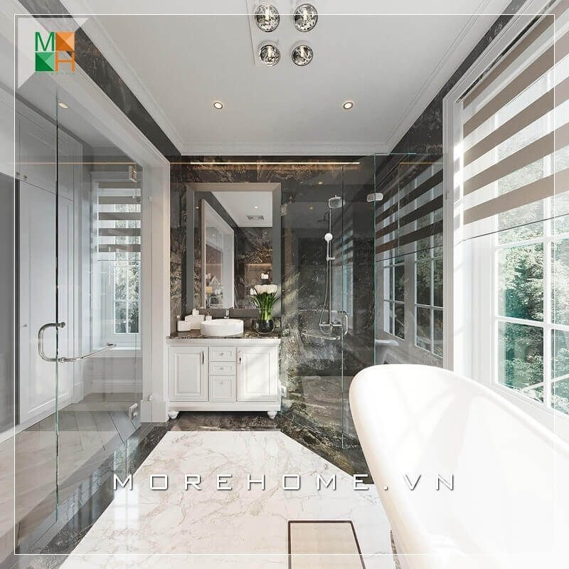 Phòng tắm biệt thự, nhà phố đẹp sang trọng sử dụng đá ốp lát cao cấp và kính ngăn hiện đại trẻ trung là không gian tuyệt vời, ấn tượng.