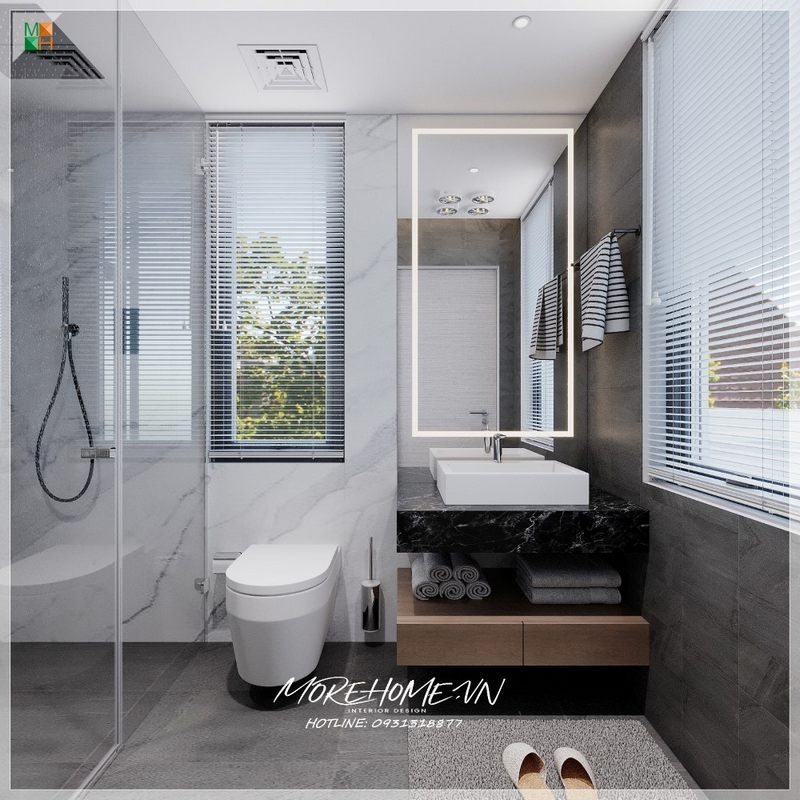 Nội thất phòng tắm hiện đại với các vật liệu từ đá, kính mang lại sự thoáng mát, rộng rãi