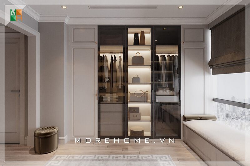Thiết kế nội thất phòng thay đồ rất hiện đại và sang trọng phù hợp cho các nhà chung cư, nhà phố, biệt thự.