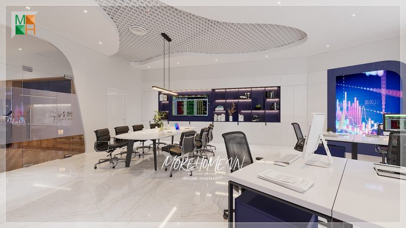 Thiết kế văn phòng mang phong cách thiết kế hiện đại mang đến 1 góc nhìn mới mẻ. độc đáo cho không gian việc thêm hiệu quả, ấn tượng gây được sự chú ý với mọi người nhìn.