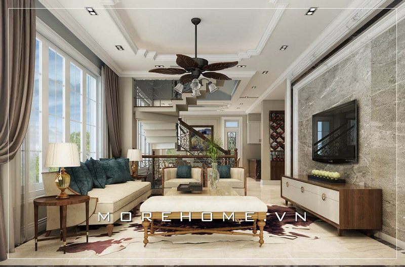 Thiết kế không gian phòng khách biệt thự sang trọng với nội thất đương đại thể hiện cá tính và đẳng cấp của gia chủ