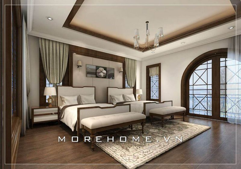 Một không gian phòng ngủ thiết kế kết hợp độc đáo giữa hai phong cách hiện đại và tân cổ điển, tinh tế sang trọng phù hợp cho chung cư, nhà phố, biệt thự.