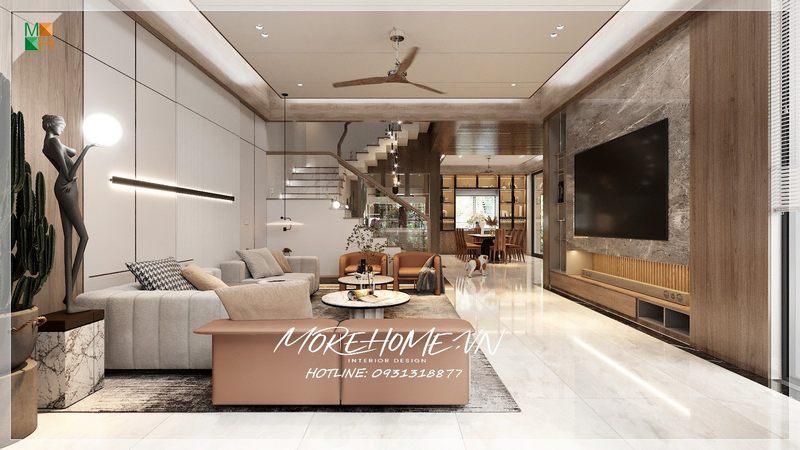 Kệ phòng khách được tận dụng để trưng bày những món đồ có decor có giá trị giúp gây được ấn tượng với khách đến chơi nhà.